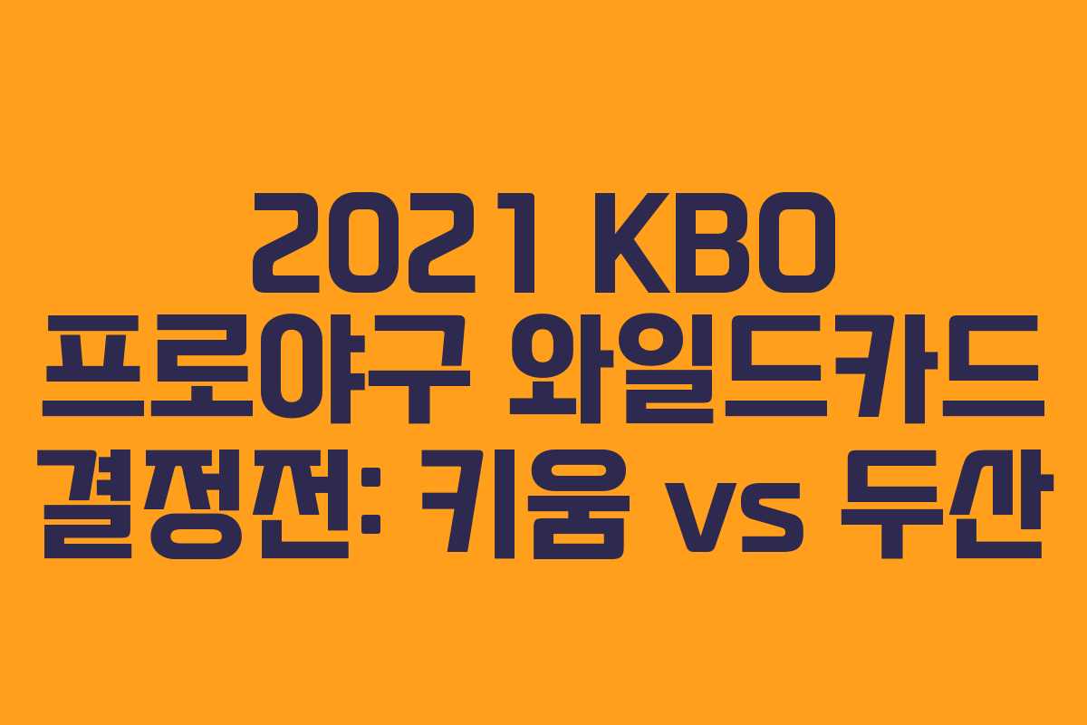 2021 KBO 프로야구 포스트시즌의 시작을 알리는 와일드카드 결정전이 키움 히어로즈와 두산 베어스의 대결로 펼쳐집니다. 두 팀의 첫 번째 경기는 11월 01일, 두 번째 경기는 11월 02일에 예정되어 있으며, 포스트시즌 진출을 위한 중요한 경기가 될 것입니다.