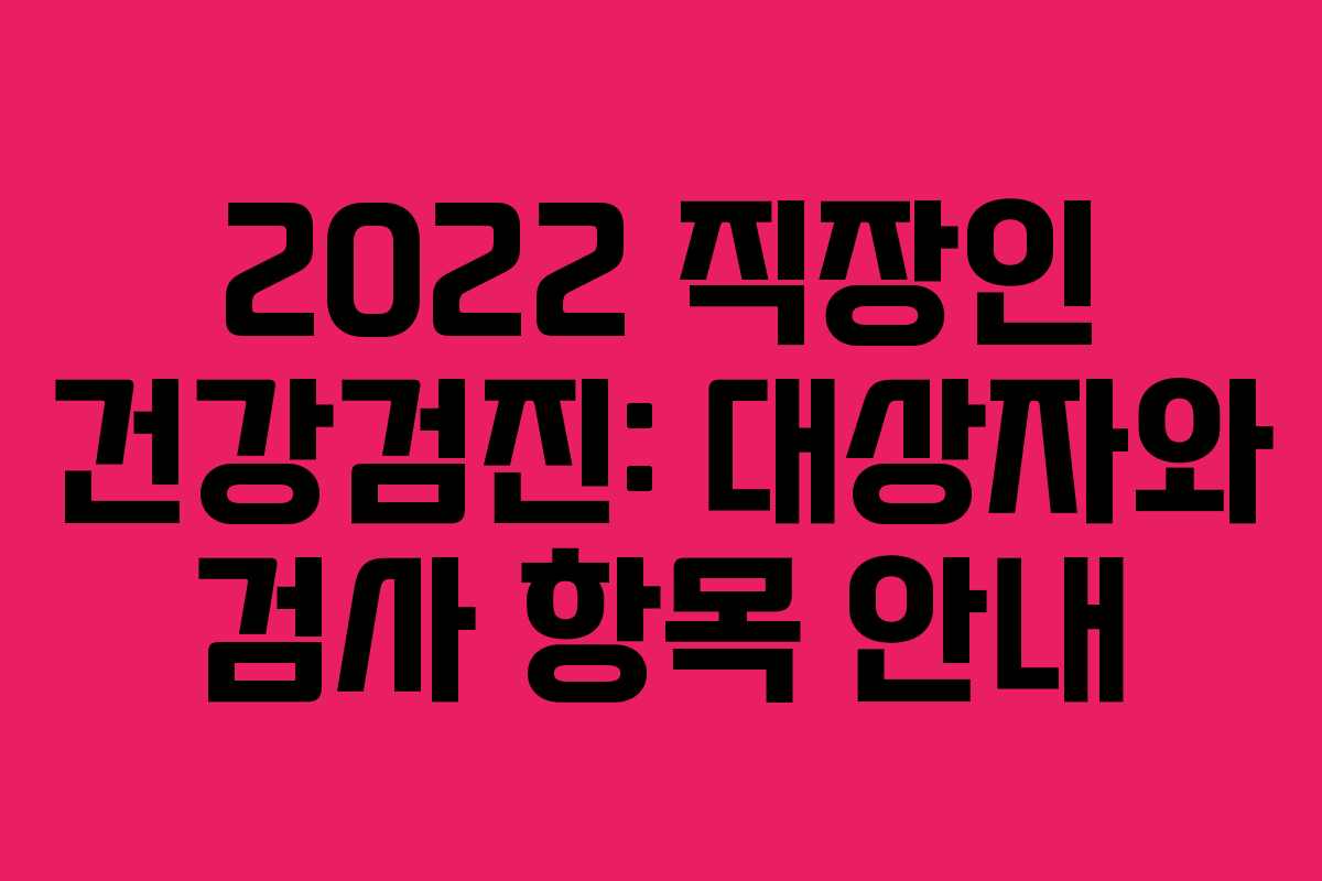2022 직장인 건강검진: 대상자와 검사 항목 안내