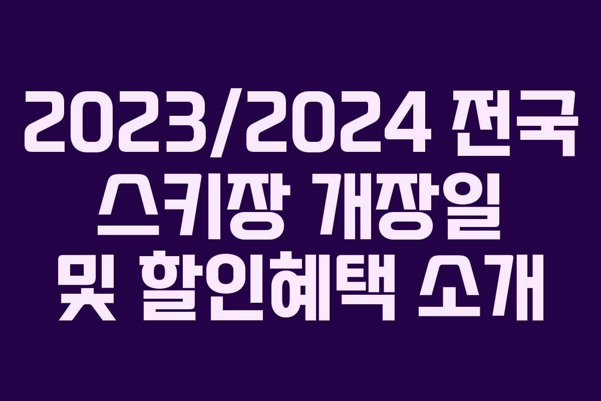 겨울이 다가오면서 스키와 스노보드를 사랑하는 이들에게 가장 기다려지는 소식은 바로 스키장 개장일입니다. 2023/2024 시즌을 맞아 전국의 스키장 개장일, 각 스키장의 특징 및 할인혜택에 대해 알아보겠습니다. 스키장 방문을 계획하고 계신 분들은 꼭 참고하시길 바랍니다.