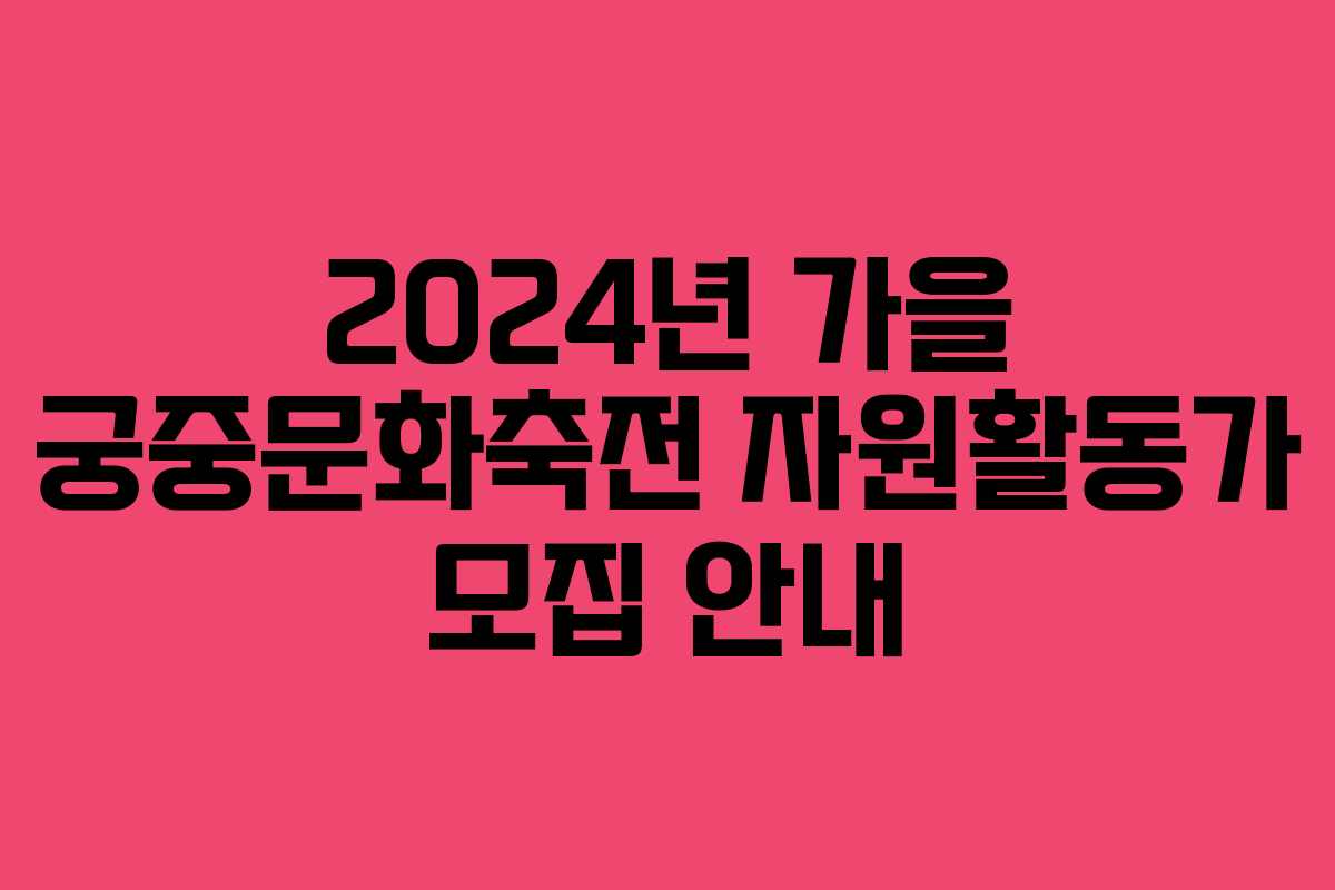 2024년 가을, 궁중문화축전이 아름다운 고궁을 배경으로 펼쳐집니다. 이 축제를 함께 만들어 갈 자원활동가 ‘궁(宮)이둥이’를 모집합니다. 이 프로그램은 궁궐의 문화유산을 깊이 경험하고, 다양한 활동에 참여할 수 있는 좋은 기회입니다.