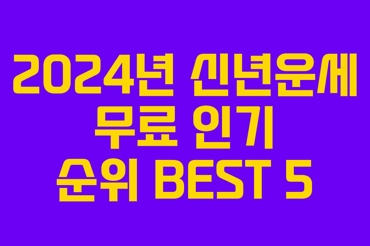 2024년이 다가오면서 많은 사람들이 새로운 희망을 안고 새해를 맞이할 준비를 하고 있습니다. 이번 포스트에서는 무료로 제공되는 신년운세 사이트 중 인기 있는 5곳을 소개합니다. 사주 및 운세를 믿는 분들을 위해 유용한 정보를 제공하니 참고하시기 바랍니다.