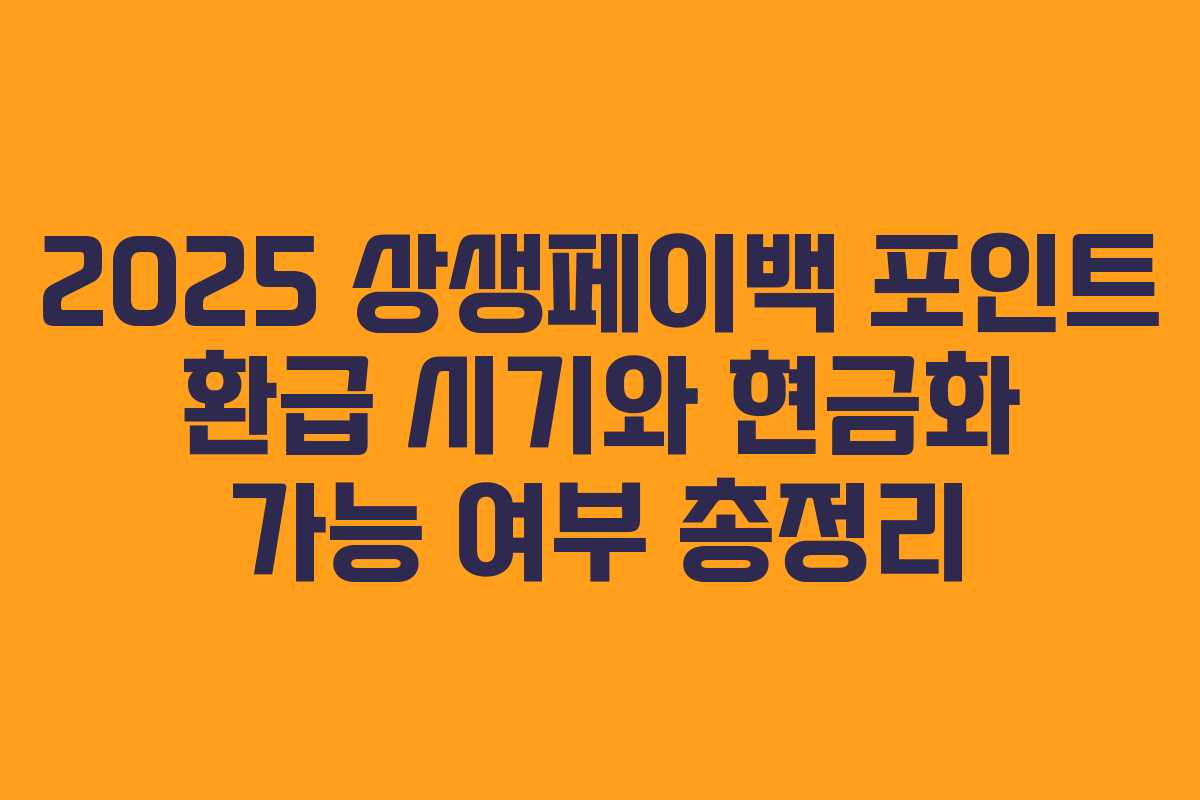 2025 상생페이백 포인트 환급 시기와 현금화 가능 여부 총정리