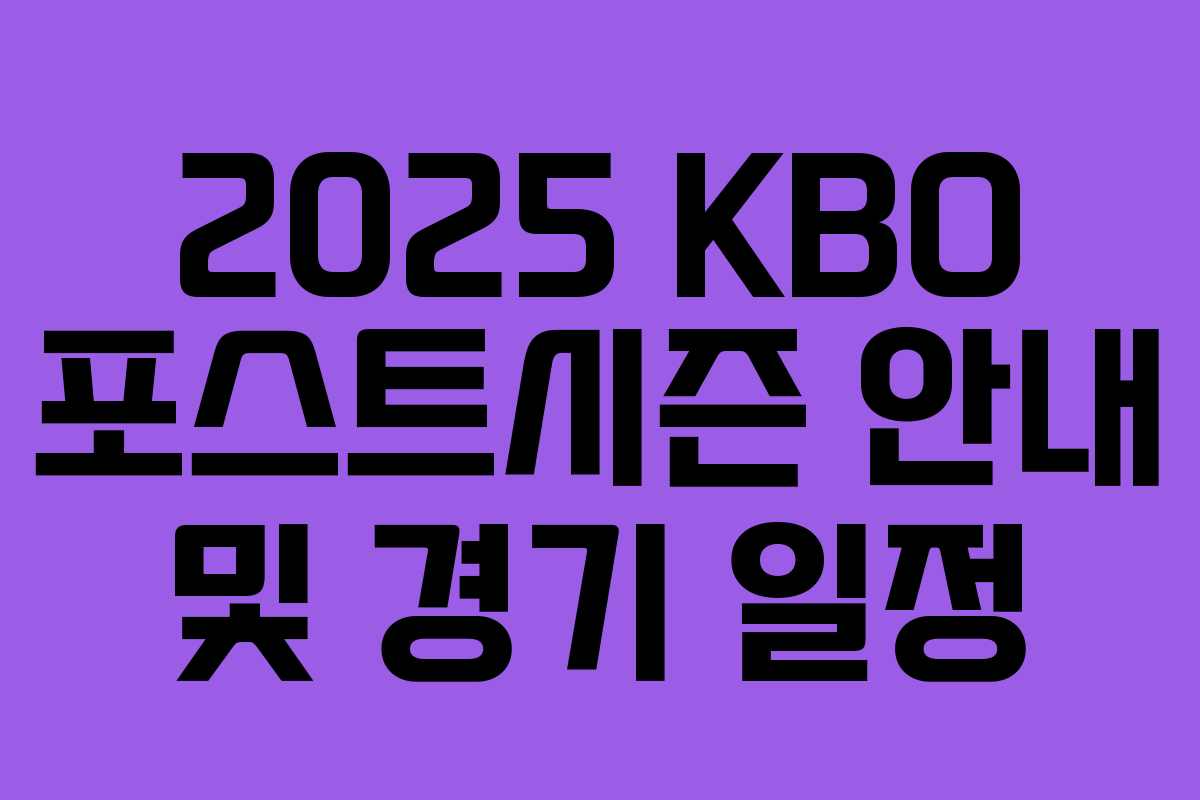 2025 KBO 포스트시즌은 다음과 같은 방식으로 진행됩니다. 와일드카드 결정전은 정규시즌 4위 팀의 홈에서 진행되며, 2선승제로 진행됩니다. 준플레이오프와 플레이오프는 5선 3승제로, 한국시리즈는 7전 4승제로 운영됩니다. 우천으로 인해 경기가 취소될 경우에는 다음 날로 연기되며, 경기가 연장될 경우 15회까지 진행됩니다.