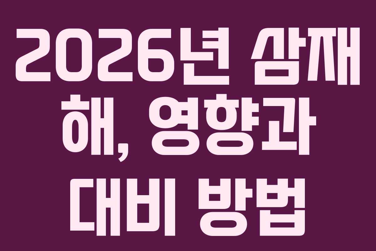 2026년은 삼재의 영향이 본격화되는 해로, 특히 토끼띠, 양띠, 돼지띠에 해당하는 분들에게 주의가 필요합니다. 이 시기에 삼재를 지혜롭게 지나가기 위한 팁을 정리해 보았습니다.