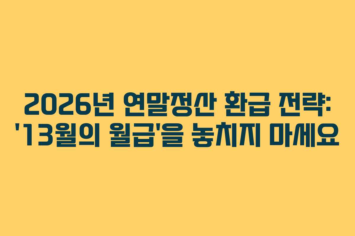 2026년 연말정산 환급 전략: '13월의 월급'을 놓치지 마세요