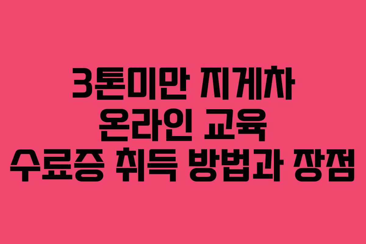 최근 코로나19로 인해 오프라인 교육 수강이 어려운 상황에서 3톤미만 지게차 온라인 교육 수료증 취득 방법과 그 장점에 대해 알아보겠습니다. 이 교육은 안전하게 지게차를 운전하기 위한 필수 과정이며, 온라인으로 편리하게 이수할 수 있습니다.