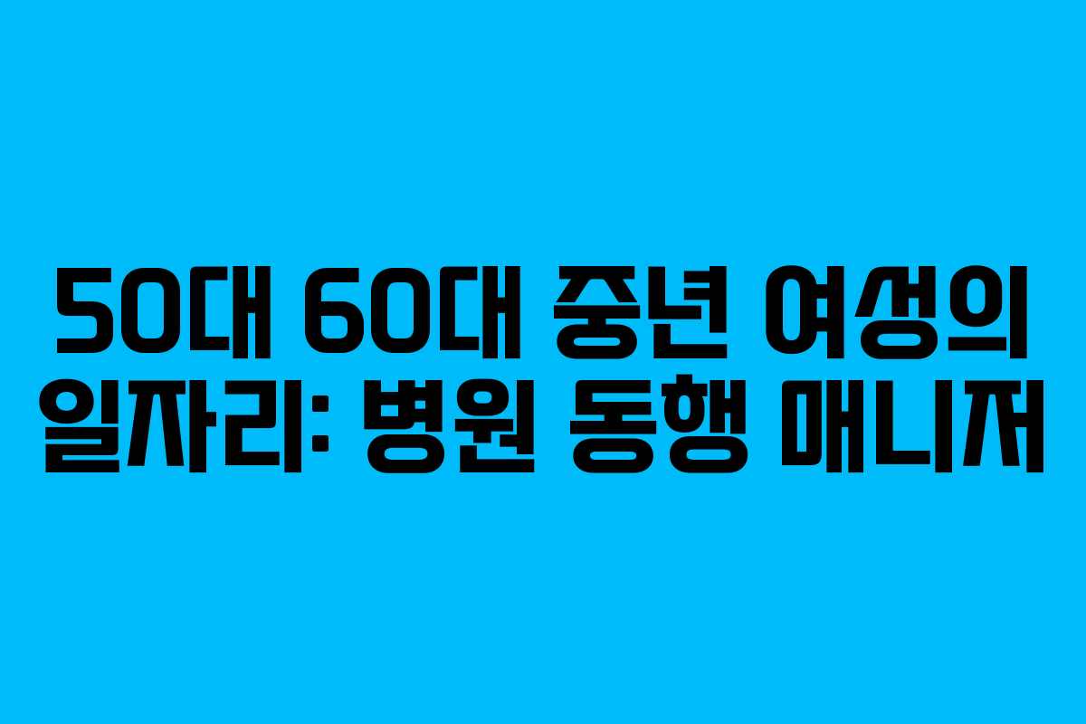 중년 여성들이 새로운 일자리를 찾는 과정에서 병원 동행 매니저라는 직업이 주목받고 있습니다. 이는 요양보호사보다 수월한 업무와 높은 급여로 많은 관심을 받고 있습니다.
