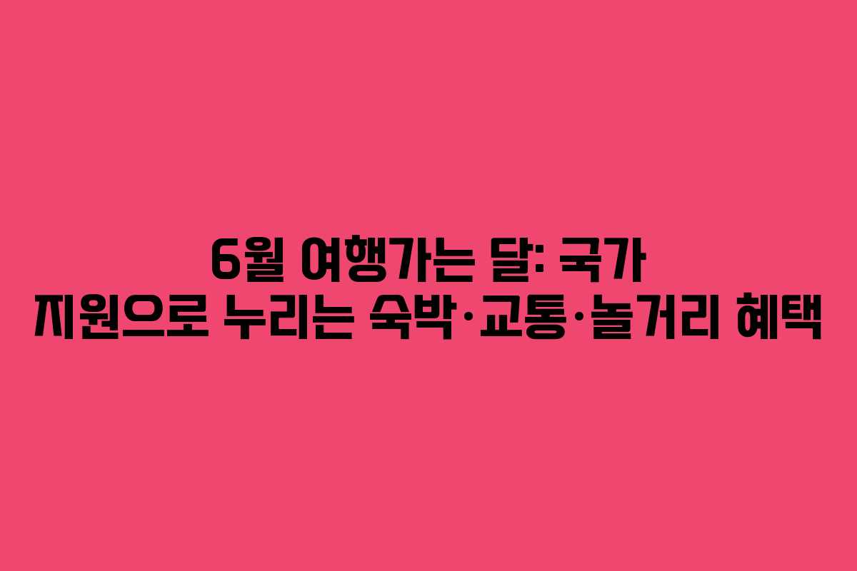 6월에 걸친 국내 여행 활성화를 돕는 국가 지원 혜택을 한눈에 정리합니다. 숙박부터 교통, 체험까지 다양한 할인과 이벤트 정보를 모아 실전 활용 팁까지 제공합니다.