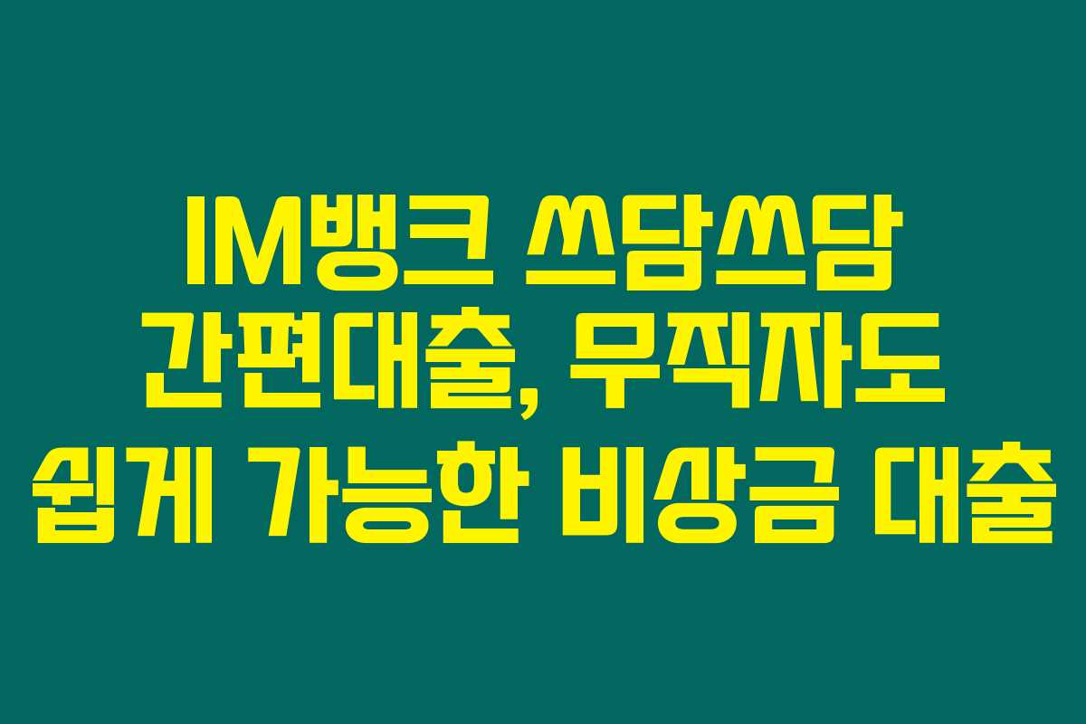 IM뱅크 쓰담쓰담 간편대출, 무엇이 특별한가?