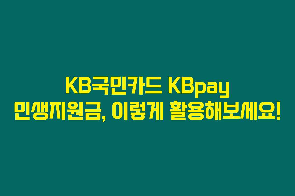 KB국민카드 KBpay 민생지원금, 이렇게 활용해보세요!