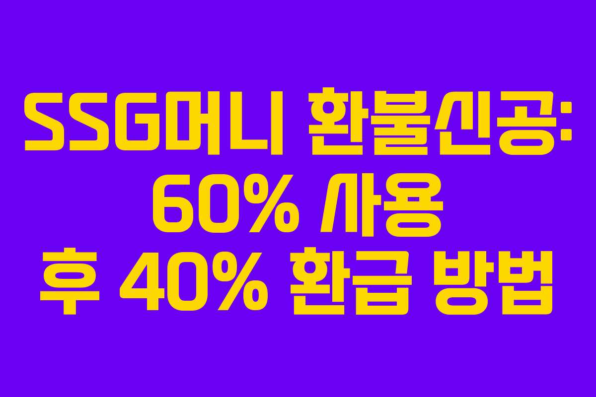 SSG머니는 SSG페이(SGPAY)에서 사용할 수 있는 유용한 결제 수단으로, 고객들은 일반적인 상품권처럼 60%를 사용한 후 나머지 40%를 환불받을 수 있습니다. 이 글에서는 고객센터에 전화를 하지 않고도 앱에서 손쉽게 환불받는 방법을 안내합니다.